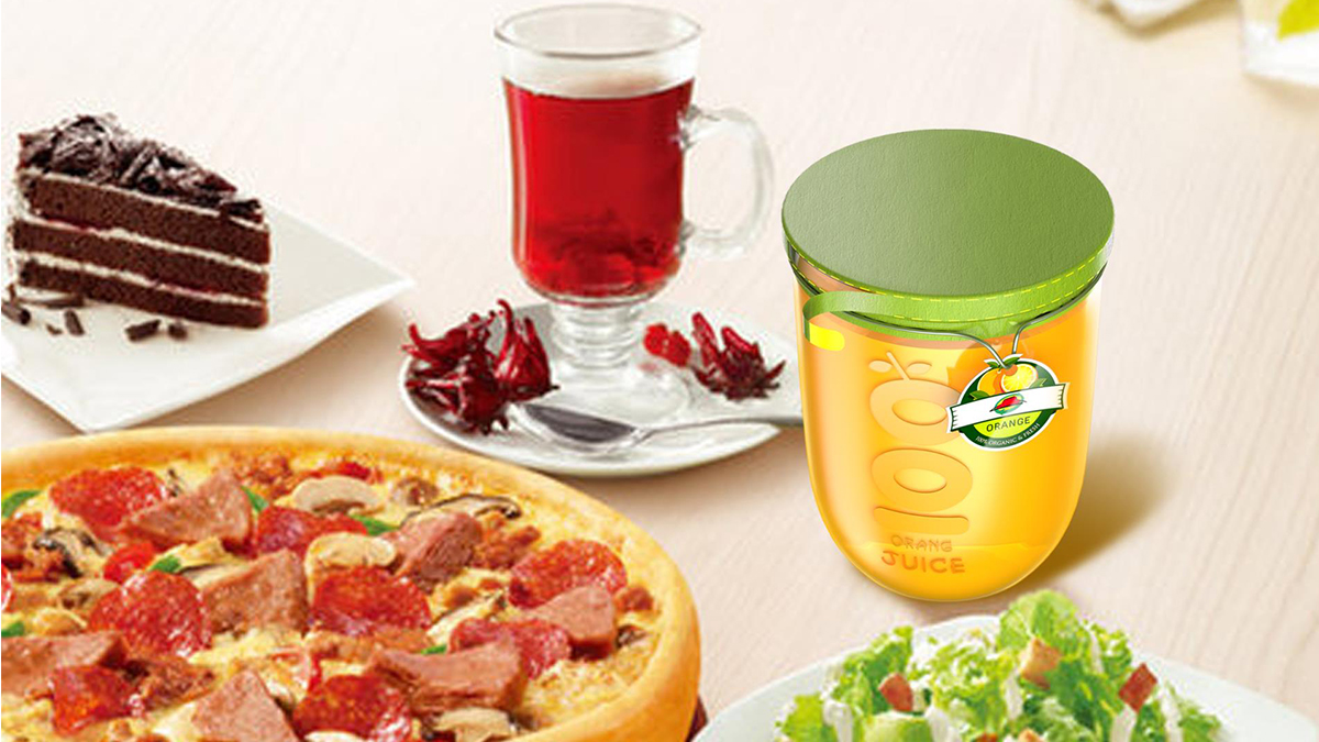 必勝客果汁杯:要新鮮要純正100%感受炎炎夏日新鮮感。飲料杯設(shè)計主要集中在年輕、活力、新鮮、有價,強(qiáng)調(diào) “100%” 核心產(chǎn)品賣點(diǎn)信息,便于識別,差異化設(shè)計。開蓋的體驗是最能體現(xiàn)產(chǎn)品新鮮的最大賣點(diǎn),采用一次性拉環(huán)式的扣蓋拉環(huán)式的開蓋方式,讓消費(fèi)者真正可以體會到100%果汁的新鮮。體現(xiàn)了產(chǎn)品的唯一性和專屬性獨(dú)特的小標(biāo)簽與拉環(huán)設(shè)計體現(xiàn)新鮮。