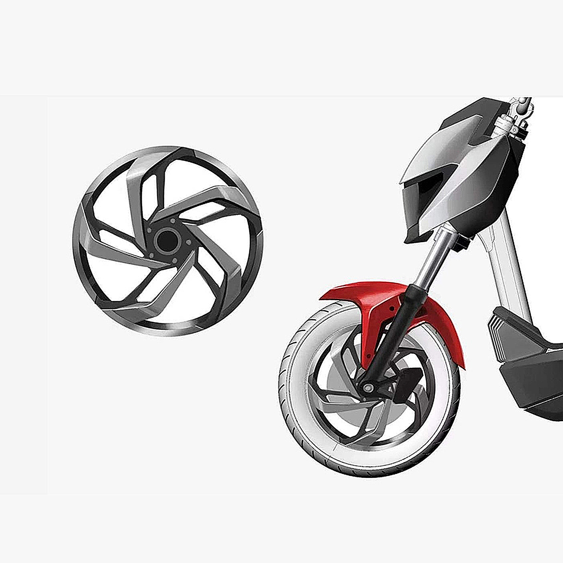 風(fēng)格探究二:智酷極客。運用幾何要素分割,鏤空的形態(tài),使得整體看起更為輕便,營造出電動車更為時尚智酷的氣息。