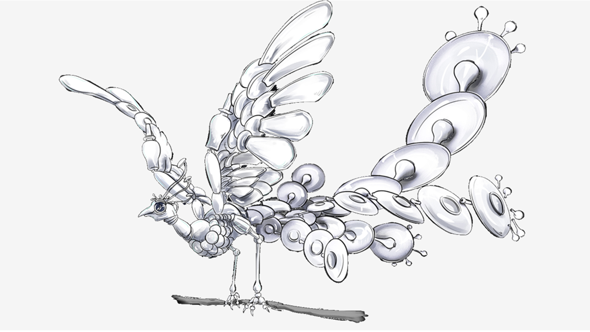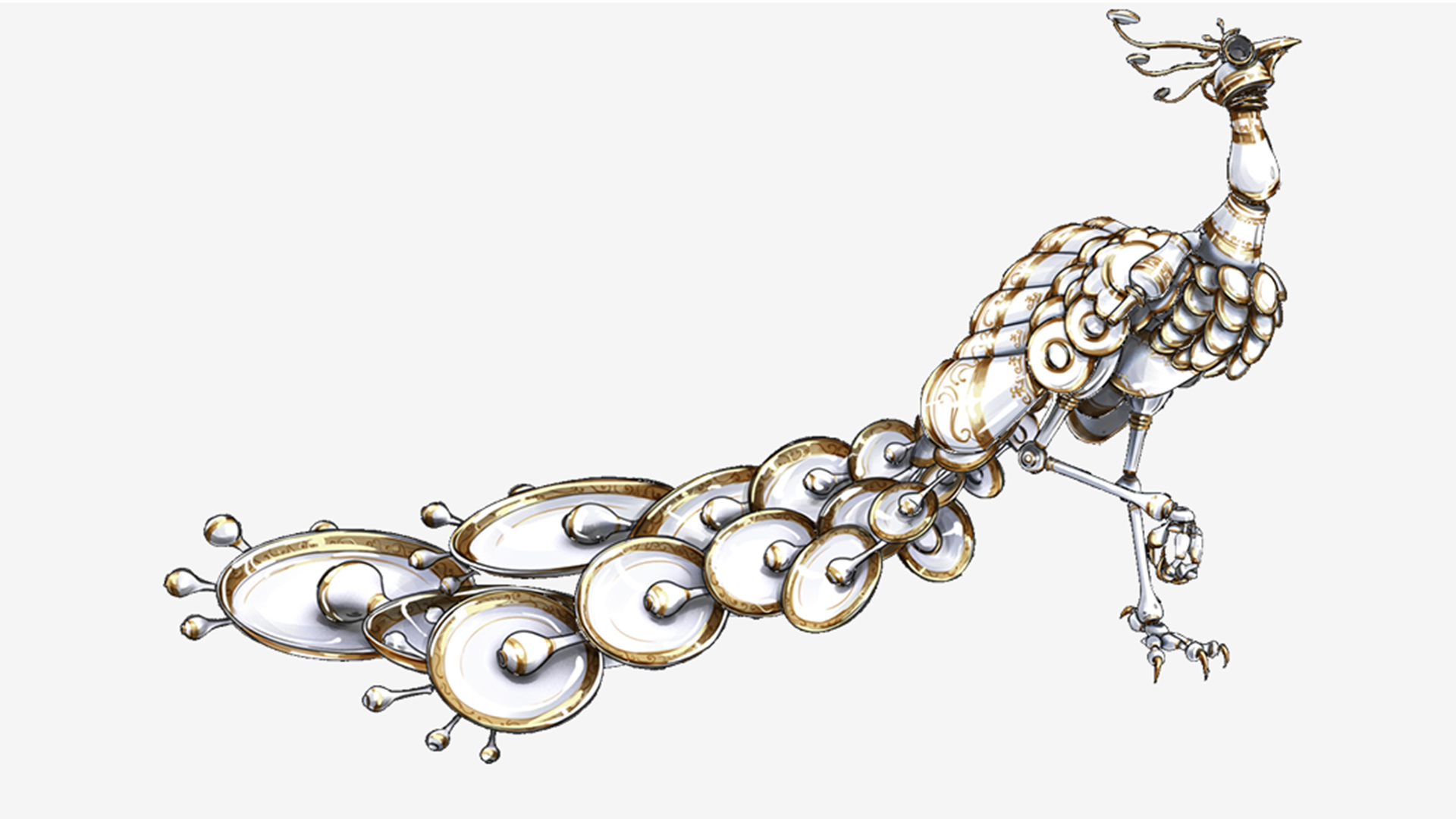 YU是一只由著名釉色瓷構(gòu)成的瑞獸。YU在瓷世界中掌管“瓷”之釉色,他的設(shè)計(jì)原型是“朱雀”。朱雀作為傳說中的神鳥,總是充滿了神秘的浪漫主義色彩。YU最開始出場(chǎng)時(shí)被設(shè)定為一只純白色的朱雀,當(dāng)她開屏?xí)r,會(huì)吸收環(huán)境中的顏色(10件中國著名顏色釉瓷器上的顏色),瞬間變得光彩照人。