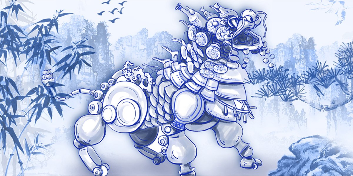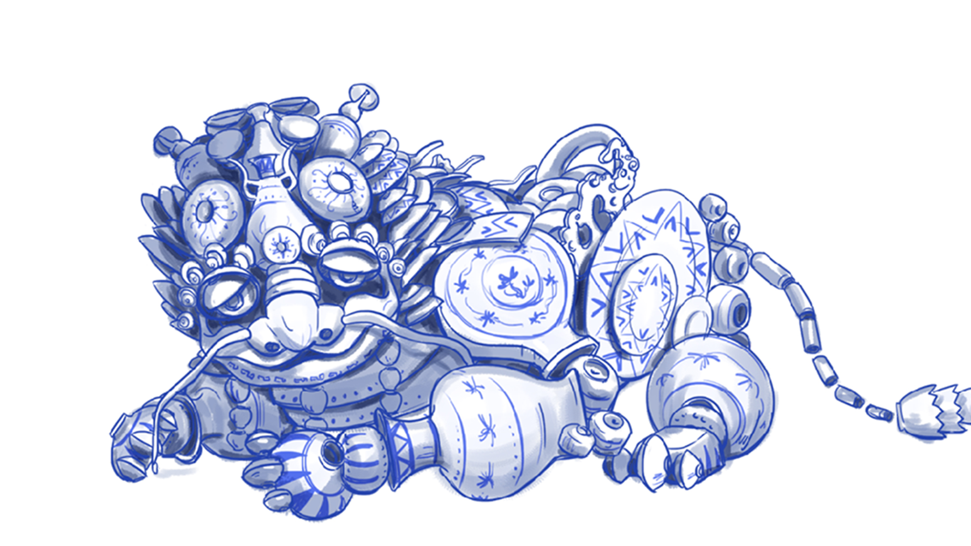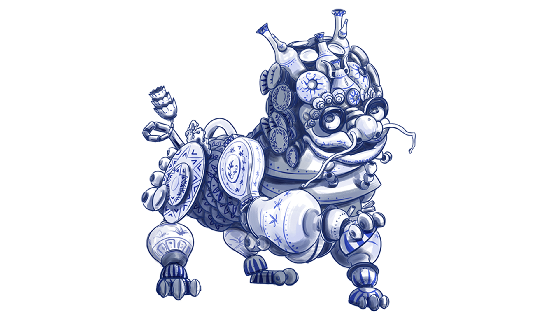 LONG是一只由著名御窯的瓷器構(gòu)成的瑞獸。LONG在瓷世界中掌管“瓷”之燒制,他的設(shè)計(jì)原型是“龍,組合他的瓷器原型主要選用清代“御窯”的代表作,特別是以造型技術(shù)見長的“雙聯(lián)瓶”、“各種釉彩大瓶”等器型拼合而成。御窯之集大成由“LONG”這一角色來演繹,也是從權(quán)力巔峰的視角對(duì)瓷文化進(jìn)行了另一個(gè)角度的詮釋。