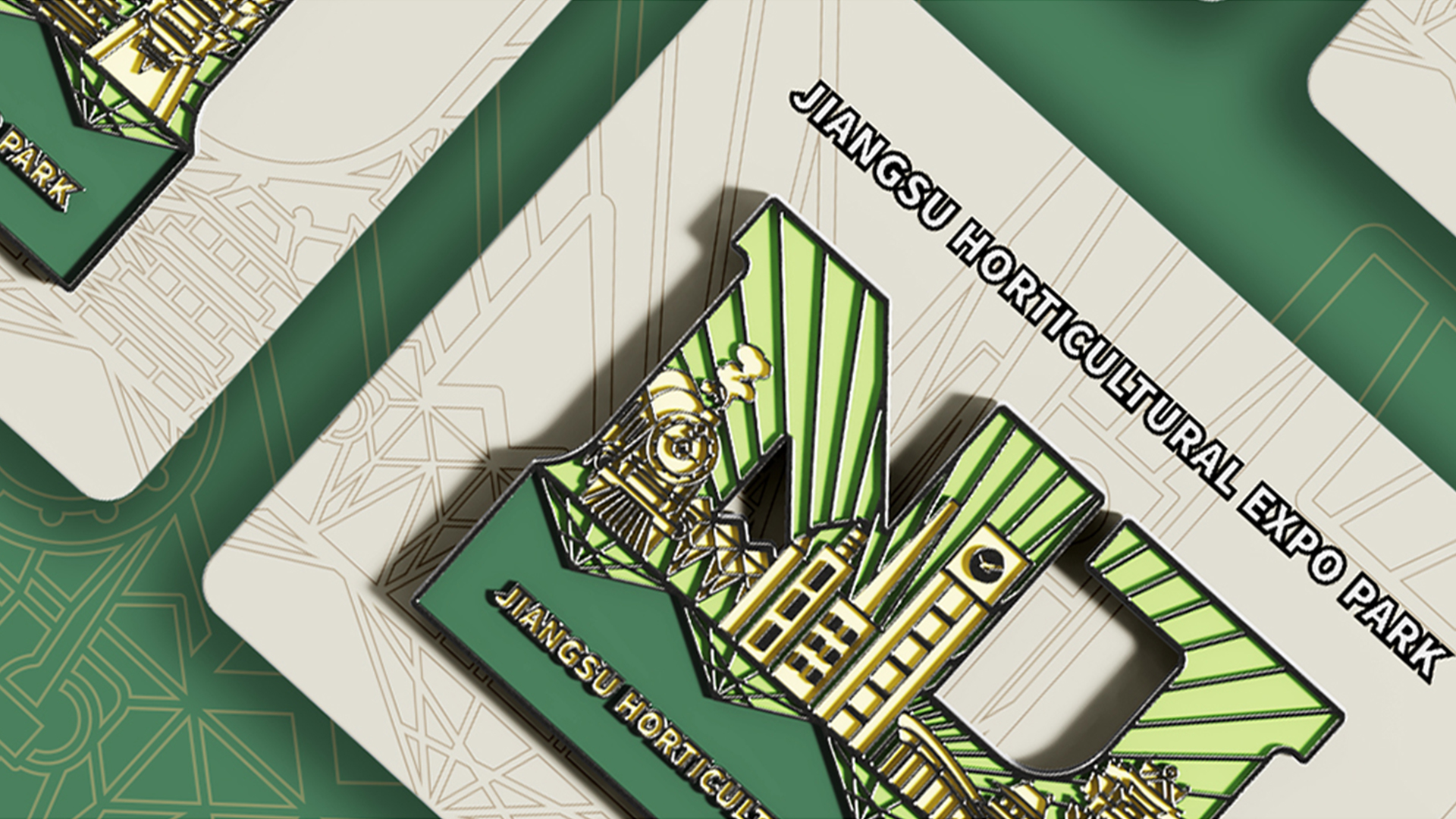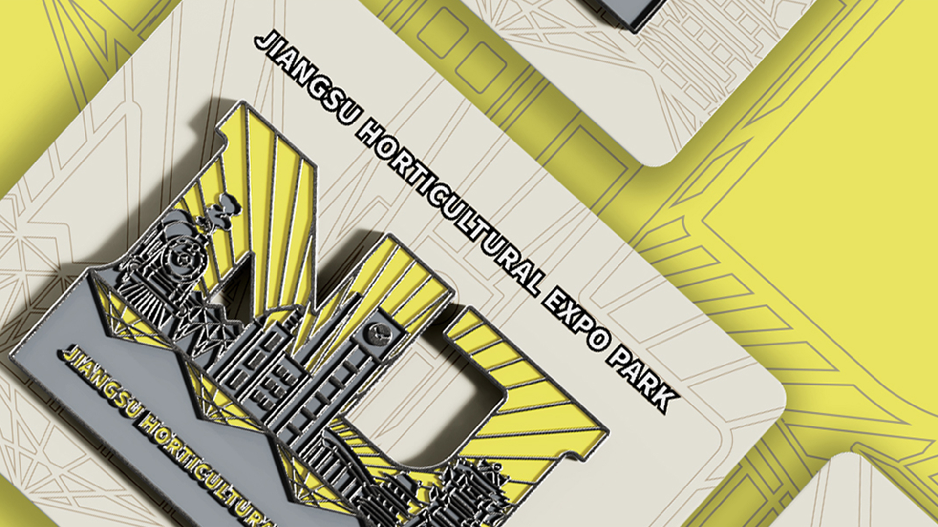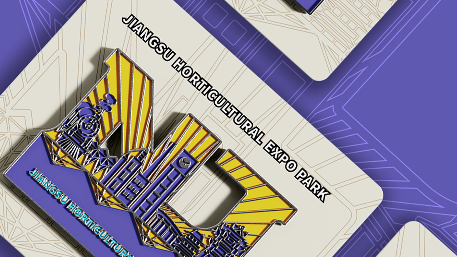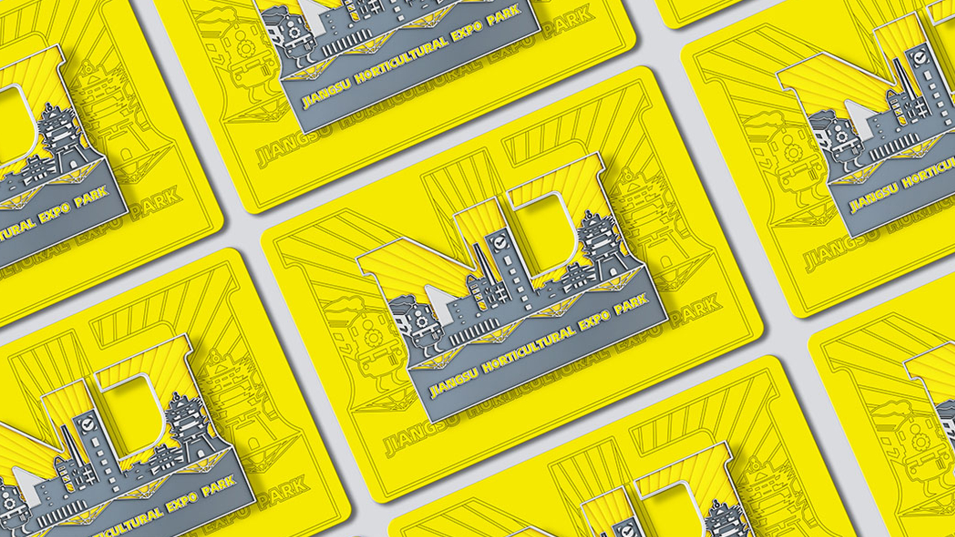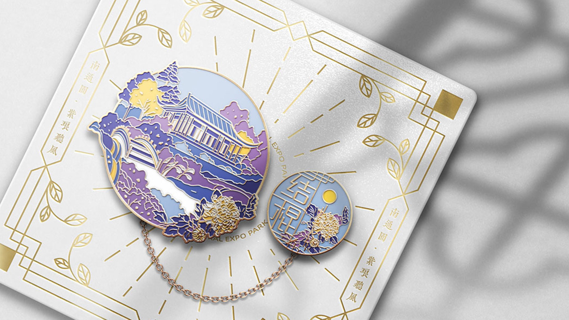 蘇韻薈谷·文創(chuàng)徽章:蘇韻薈谷徽章系列以江蘇省十三市經(jīng)典園林建筑為靈感,分別融入各地代表美好寓意的特色方言,從傳統(tǒng)園林窗花切入,運(yùn)用視覺立體化手法,形成具有地方特色的徽章視覺體系。