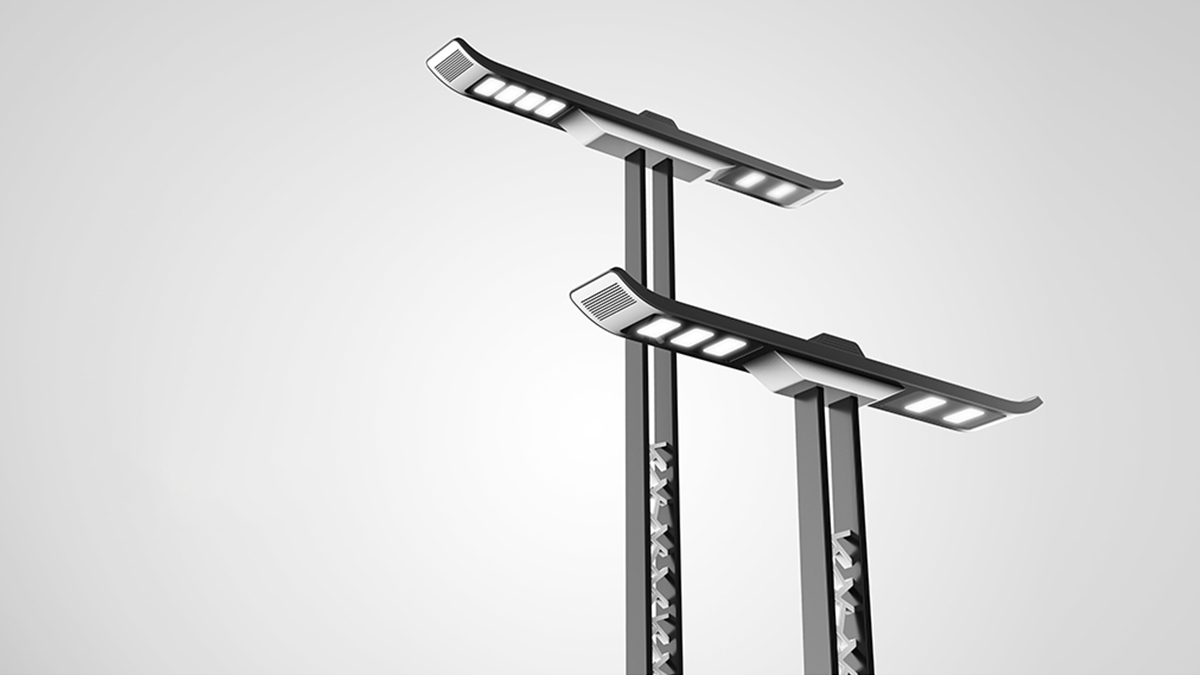 以江南獨(dú)特的建筑風(fēng)格設(shè)計(jì)此款路燈,應(yīng)用白墻黑瓦的色彩,將烏黑的瓦房上翹元素運(yùn)用至路燈的照明位置,加以花窗式錯(cuò)落有致的紋路樣式,讓此款路燈更具江南風(fēng),營(yíng)造了獨(dú)特的江南韻味。