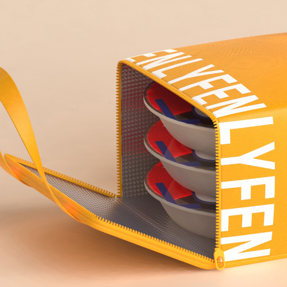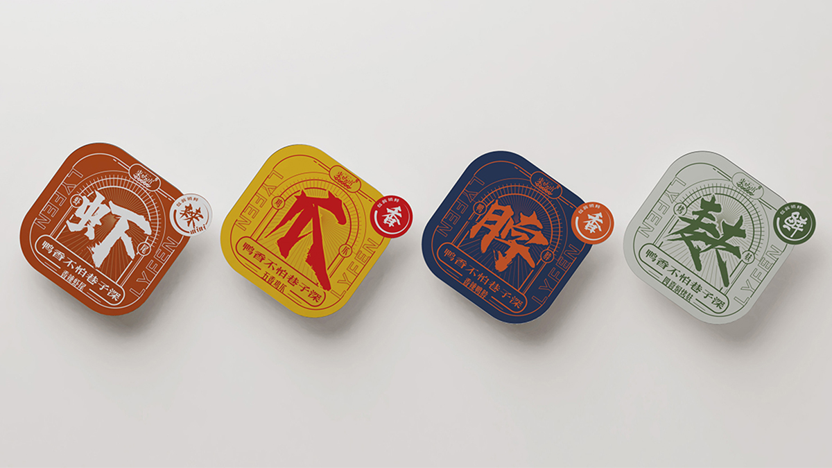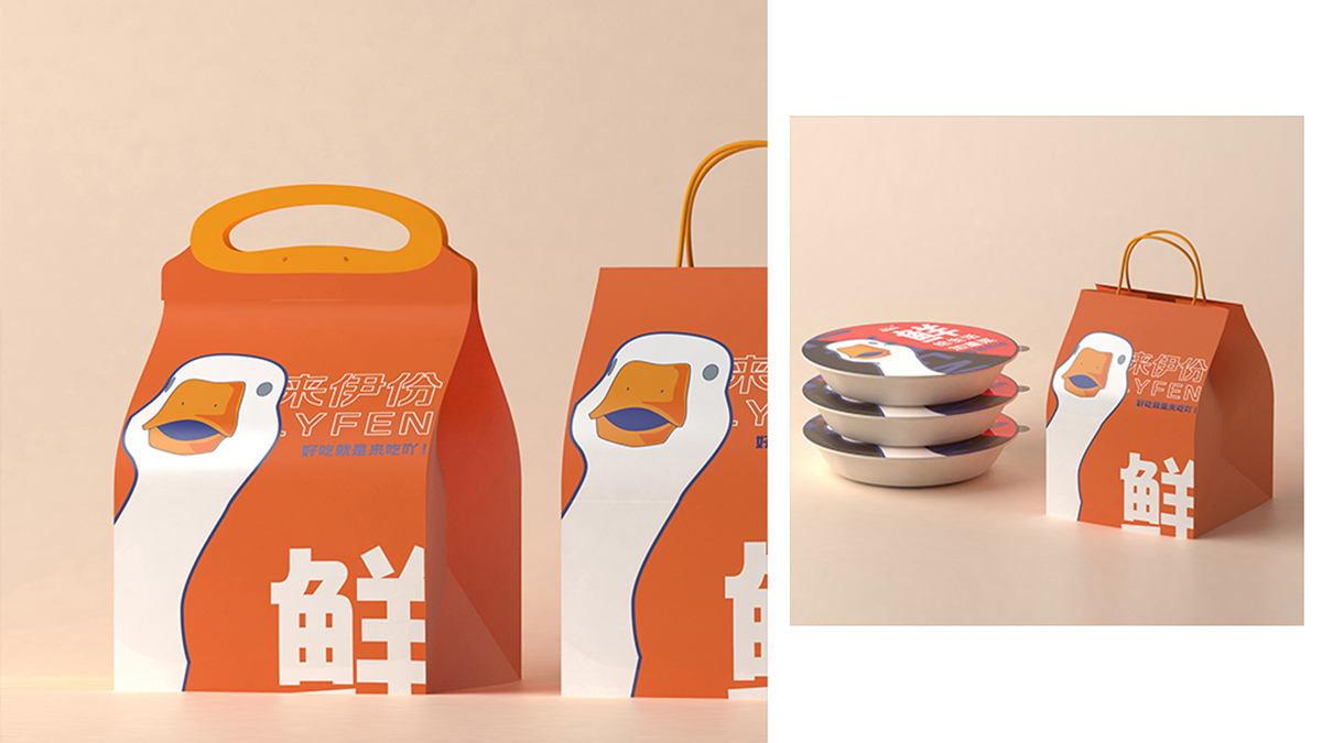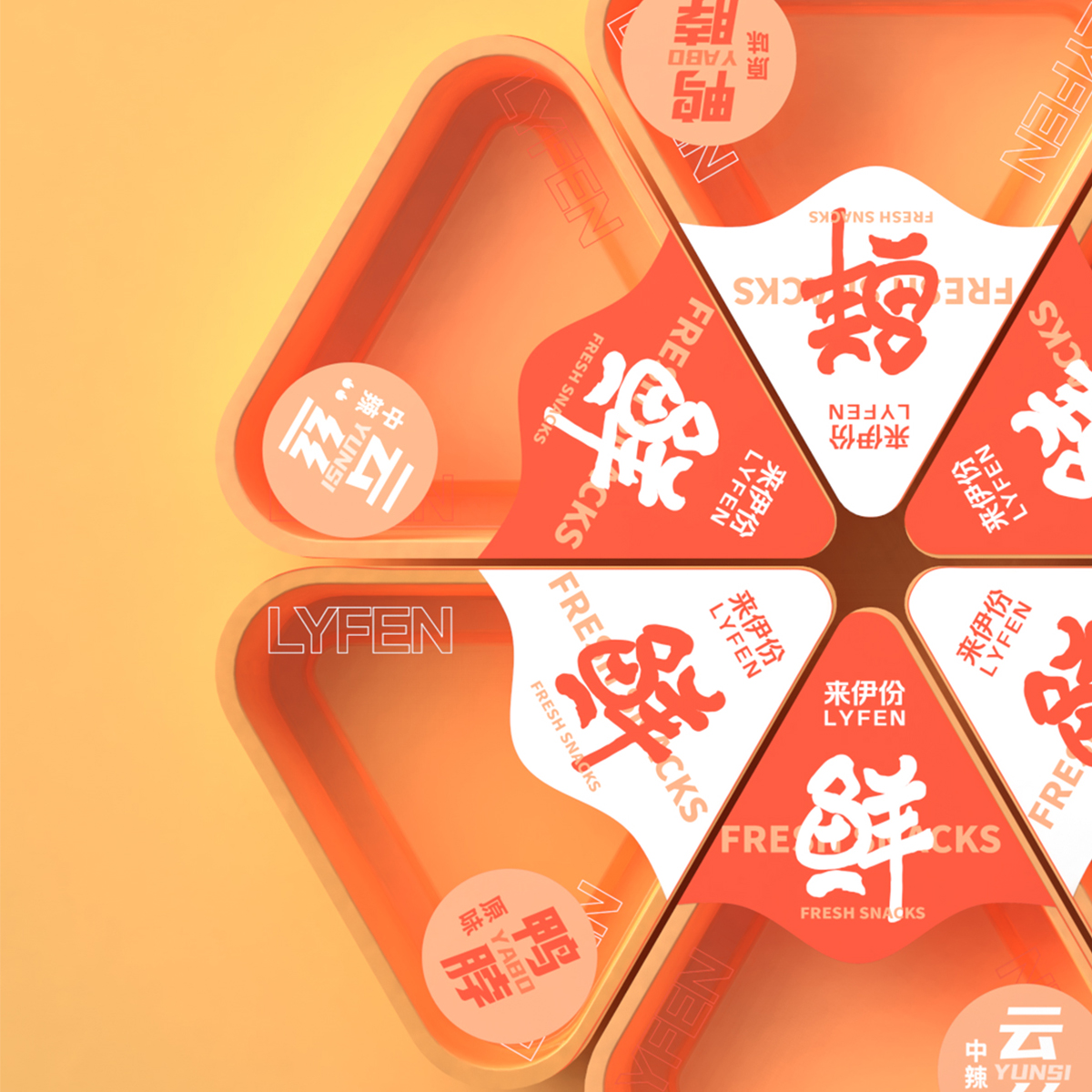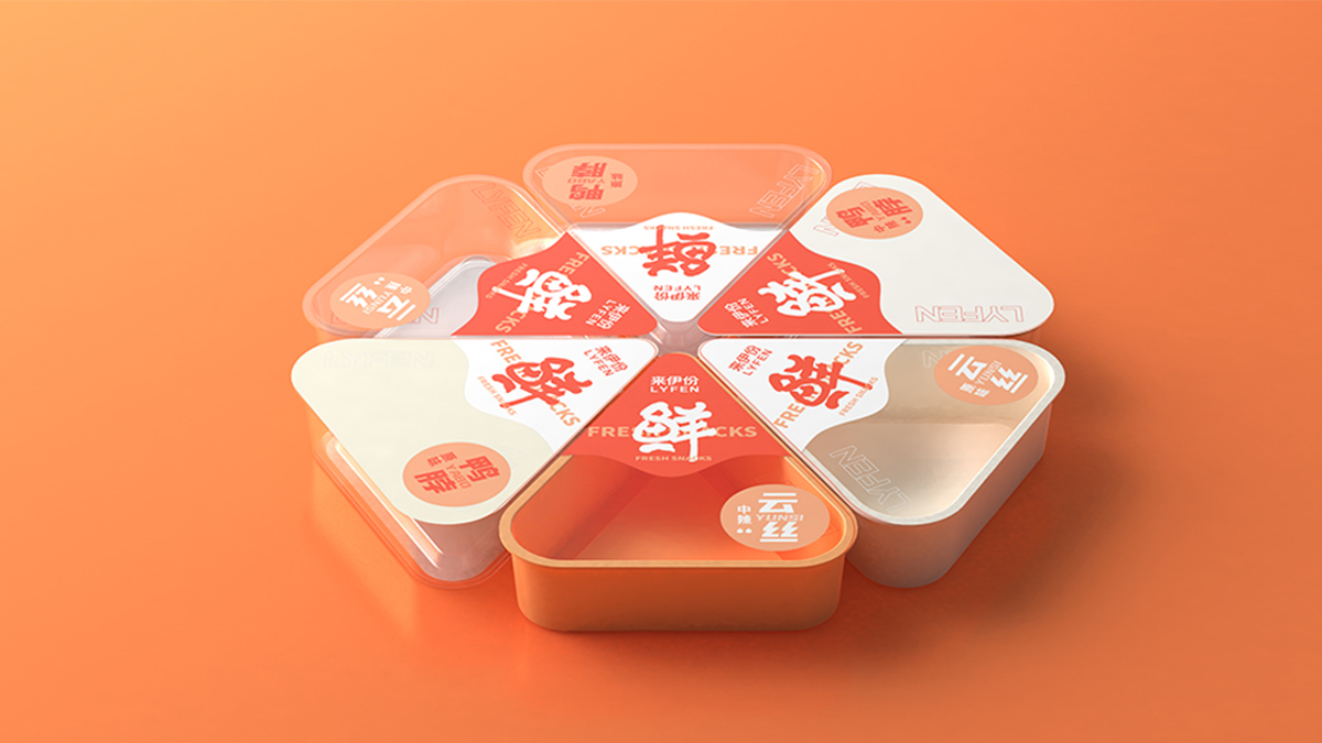 來伊份-給生活加道菜:八邊食盒,為味覺錦上添花。采用了中國傳統(tǒng)餐具錦盒的八邊造型,八也象征著八方來客,兼容并蓄,雅俗共賞的包容態(tài)度,與來伊份的品牌文化相符。底部貼紙內(nèi)附紙巾手套包,提升消費者食用體驗?;盍︴r食,運用高飽和的明艷色彩和可愛年輕的鴨子形象提升視覺吸引力。