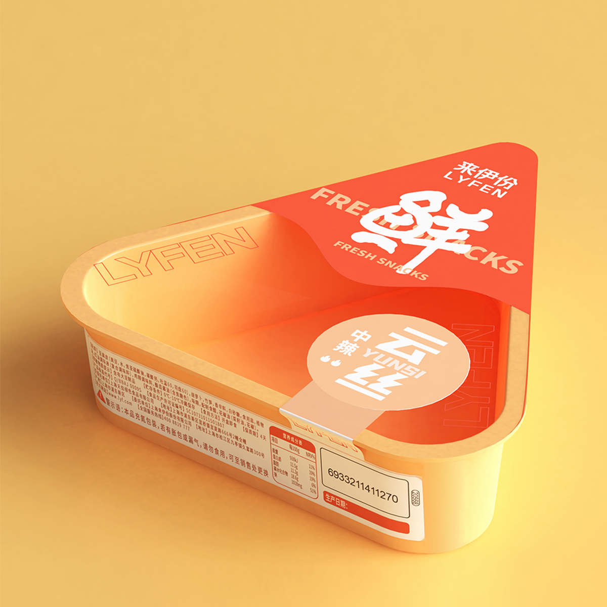 來伊份-鎖鮮裝:突出來伊份品牌核心“鮮”的通版印刷采用雙貼紙的形式,正面品類信息貼紙,提升用戶選購體驗。透明材質(zhì),新鮮看得見,突出來伊份品牌核心“鮮”的通版印刷。采用雙貼紙的形式,正面品類信息貼紙,提升用戶選購體驗。背面詳細信息貼紙,同時也作為底封,封住在盒子底部增加的手套包。通過增加盒子厚度和減小傾斜角度,使盒子能夠獨立站立,增加陳列美觀度和方便性。