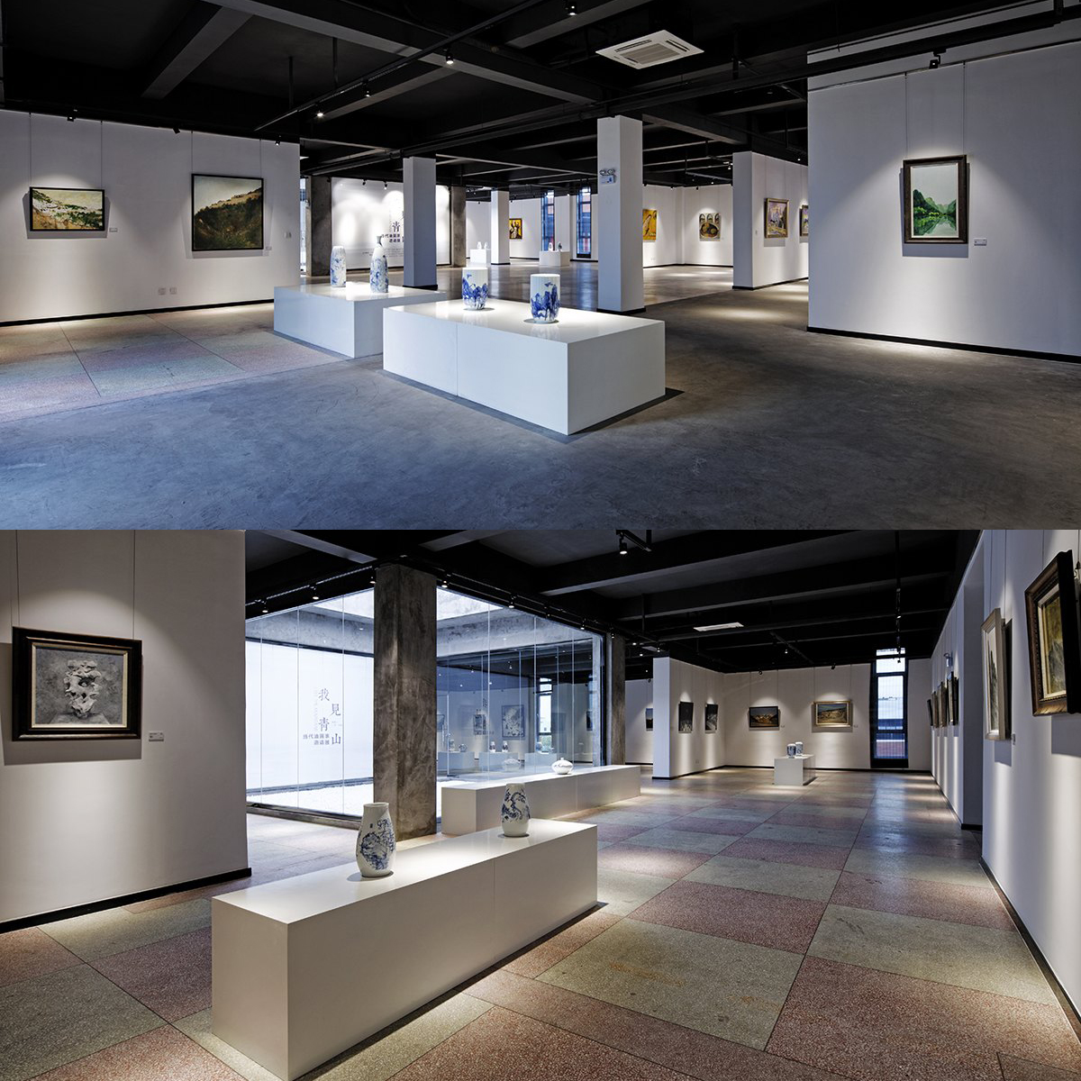 藝術(shù)的生命不為世俗的價(jià)值所累,唯有伯樂眼中的凈土,才是其生長(zhǎng)蔓延的棲身之所。我見青山,青山有我才為青山,體悟藝術(shù)中含蓄不可捉摸的自我,或是藝術(shù)最初的意義所在。本項(xiàng)目位于藝術(shù)園區(qū)內(nèi),項(xiàng)目將藝術(shù)與公眾生活、文化教育緊密結(jié)合。在設(shè)計(jì)中采用園林設(shè)計(jì)的敘述方式,做到一步一景,出出成景,在有限的空間中創(chuàng)造別有洞天的生動(dòng)畫面。整體空間規(guī)劃中,還規(guī)劃設(shè)計(jì)了會(huì)議區(qū)、觀眾休息區(qū)、餐飲區(qū)等功能區(qū),旨在增加空間附加值,同時(shí)提升觀者的觀展體驗(yàn)。