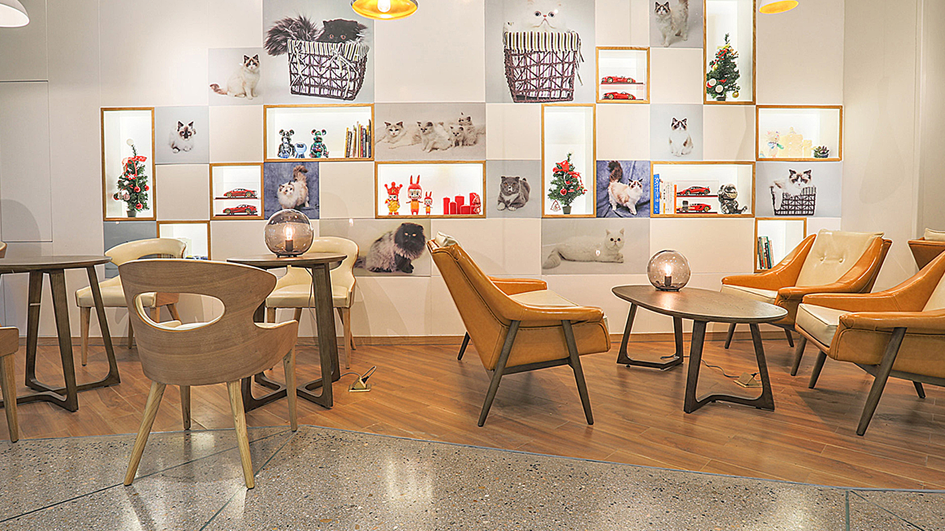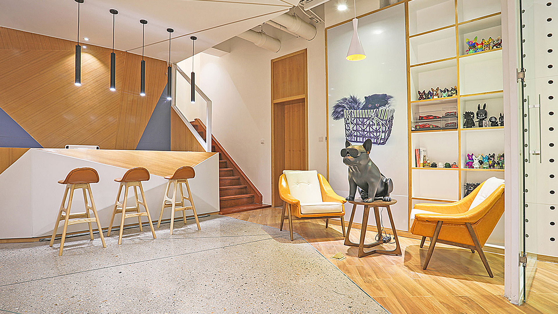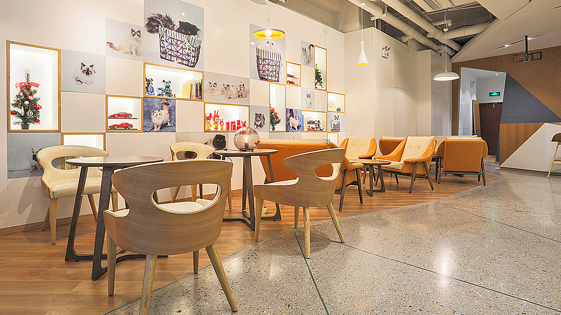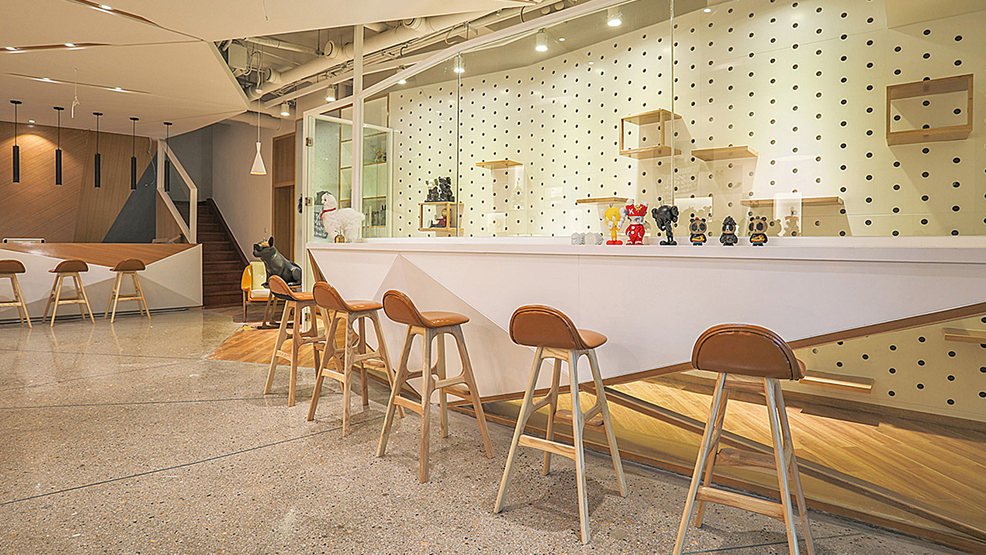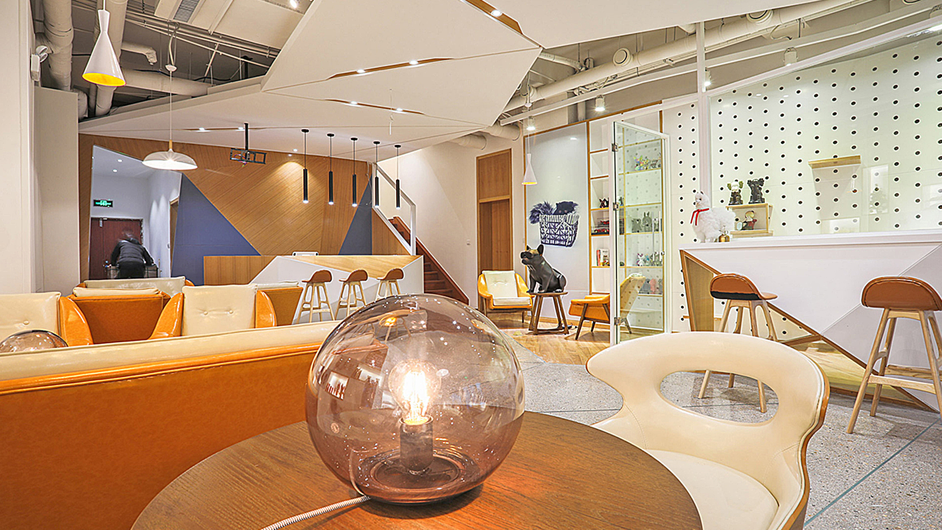 這次的設(shè)計(jì),我們將重新詮釋寵物店的含義,社區(qū)門口的寵物店不能只是一家寵物美容或者寵物用品的小超市,而更應(yīng)注重休閑生活氛圍體驗(yàn),形成養(yǎng)寵物人們之間能夠進(jìn)行話題交流的場所,為這些熱愛生活,熱愛寵物的人們提供家一樣的感受??臻g以暖黃色作為主色調(diào),以及一系列寵物裝飾造型,都很好的表現(xiàn)出店鋪的“溫馨度”,讓顧客到店體會(huì)到的不僅僅是專業(yè)、放心,更多了一份溫暖。設(shè)計(jì)師在大門出設(shè)計(jì)了一個(gè)櫥窗,偶然經(jīng)過的路人透過櫥窗,里面的溫馨場景一目了然。