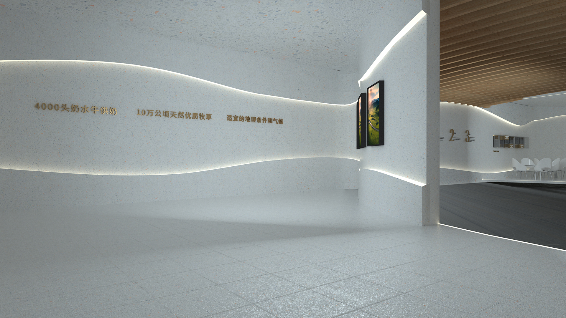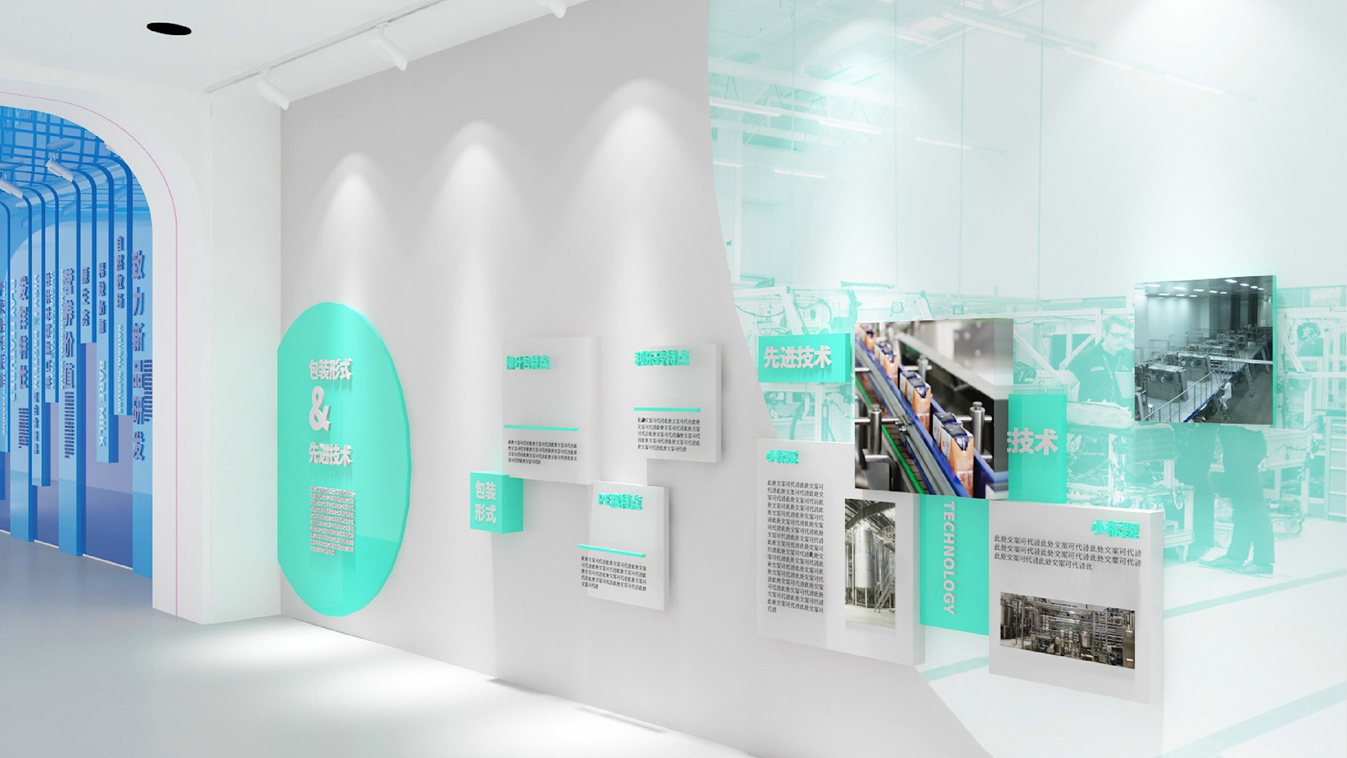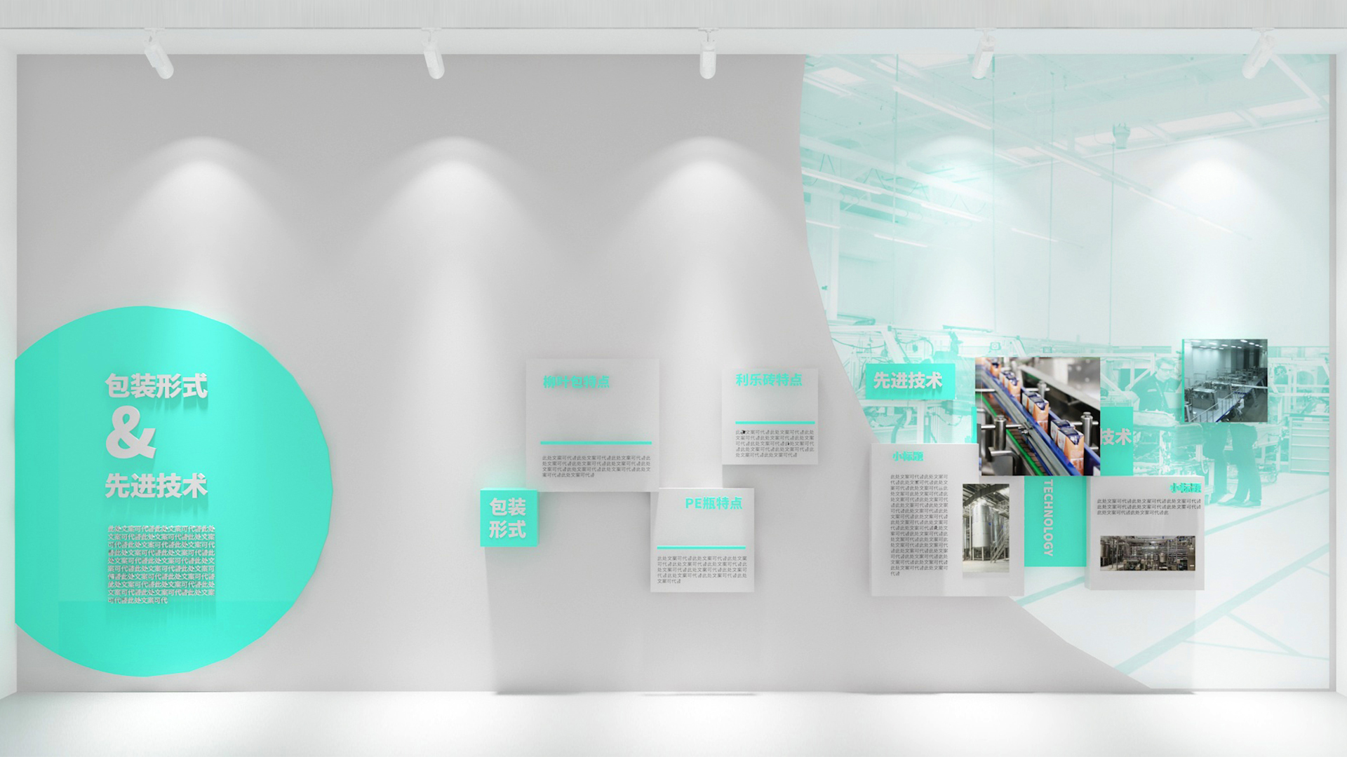總控室后的玻璃,因?yàn)閰⒂^走廊顏色比較豐富,考慮到如果這里也做色彩或者比較復(fù)雜的設(shè)計(jì),會(huì)造成是視覺混亂,所以我們把這扇玻璃上的遮擋裝飾設(shè)計(jì)成和墻面一樣的白色,放上slogan,這樣整體比較統(tǒng)一自然。