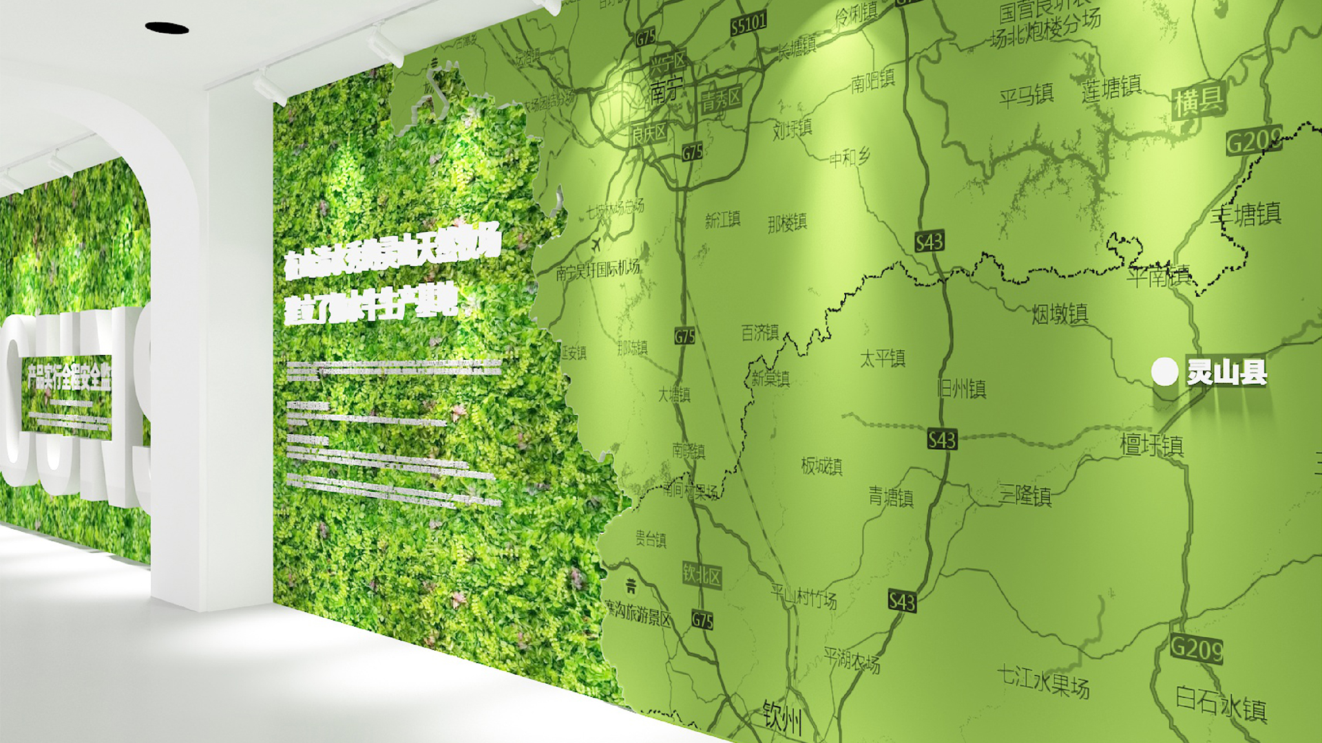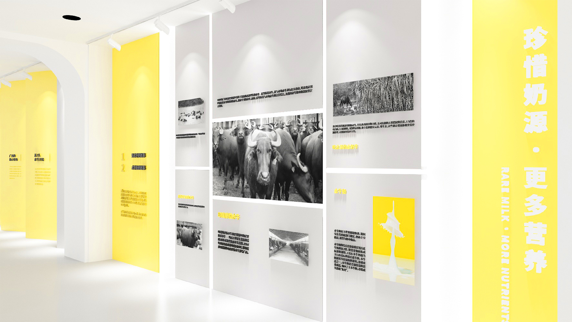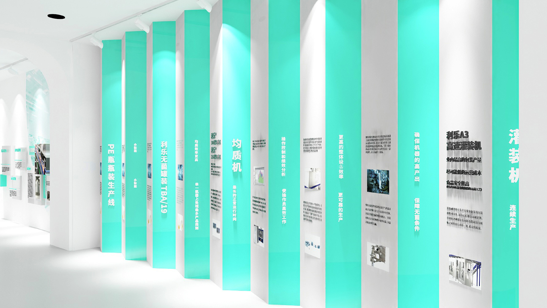 總控室后的玻璃,因?yàn)閰⒂^走廊顏色比較豐富,考慮到如果這里也做色彩或者比較復(fù)雜的設(shè)計(jì),會(huì)造成是視覺混亂,所以我們把這扇玻璃上的遮擋裝飾設(shè)計(jì)成和墻面一樣的白色,放上slogan,這樣整體比較統(tǒng)一自然。