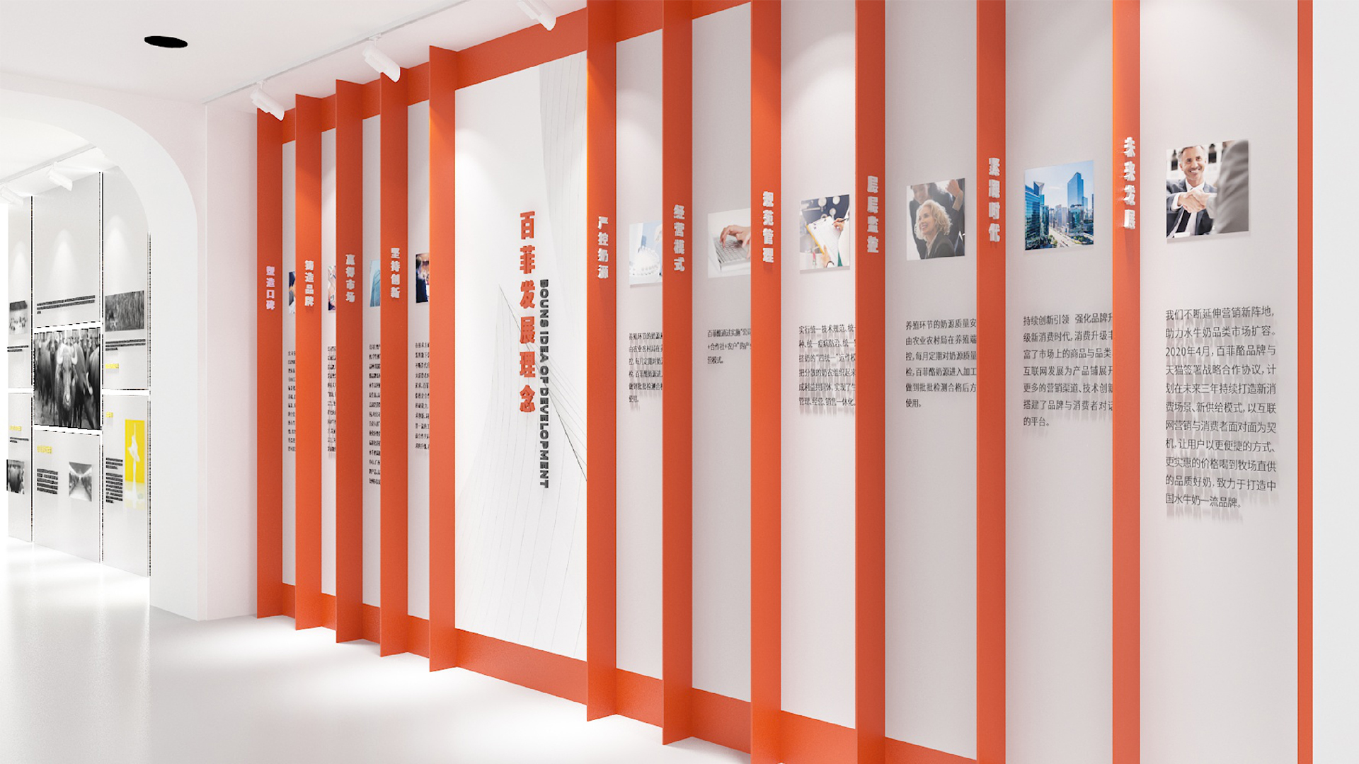 長廊文化墻以彩虹為創(chuàng)意,依次講述百菲從0-1的品牌故事。色彩明亮讓人眼前一亮,顏色的變化與豐富讓人更有興趣。彩虹寓意著美好。百菲一路保持初心,專注研發(fā)保證品質(zhì),最終好的產(chǎn)品被消費(fèi)者認(rèn)可,雨后彩虹好運(yùn)會(huì)一直陪伴。