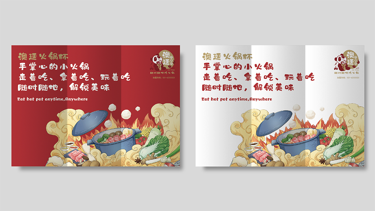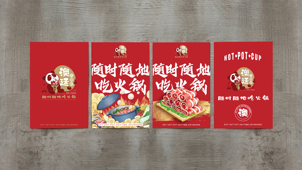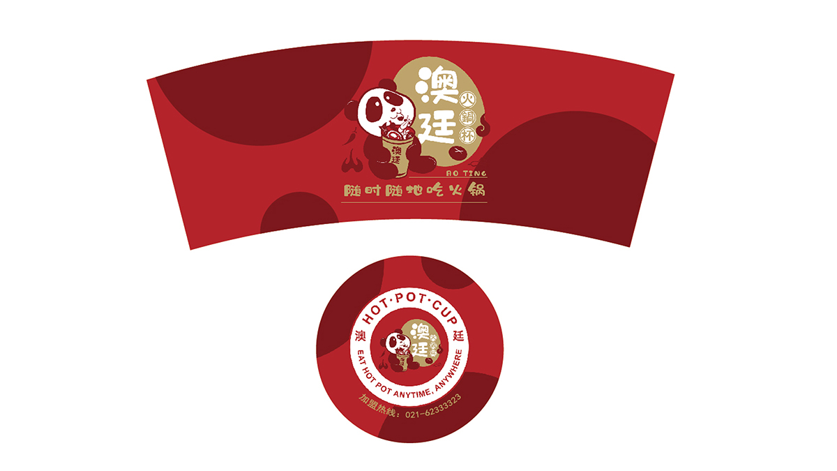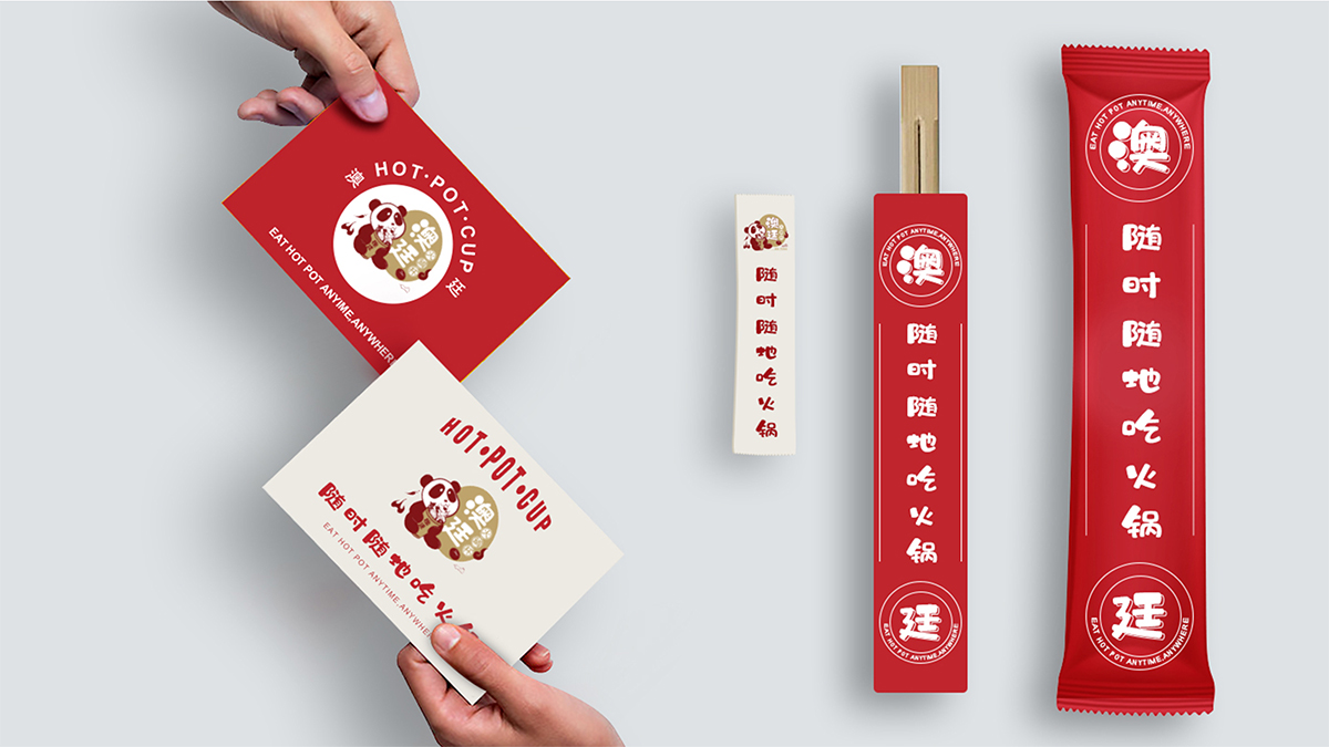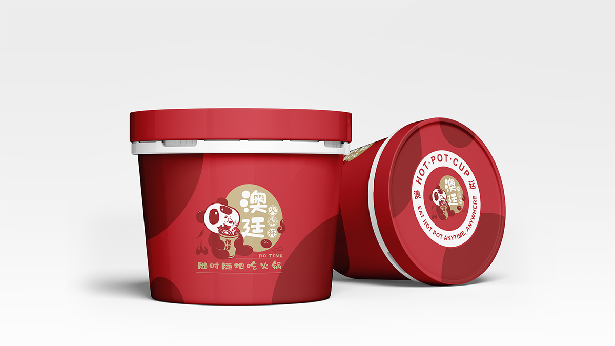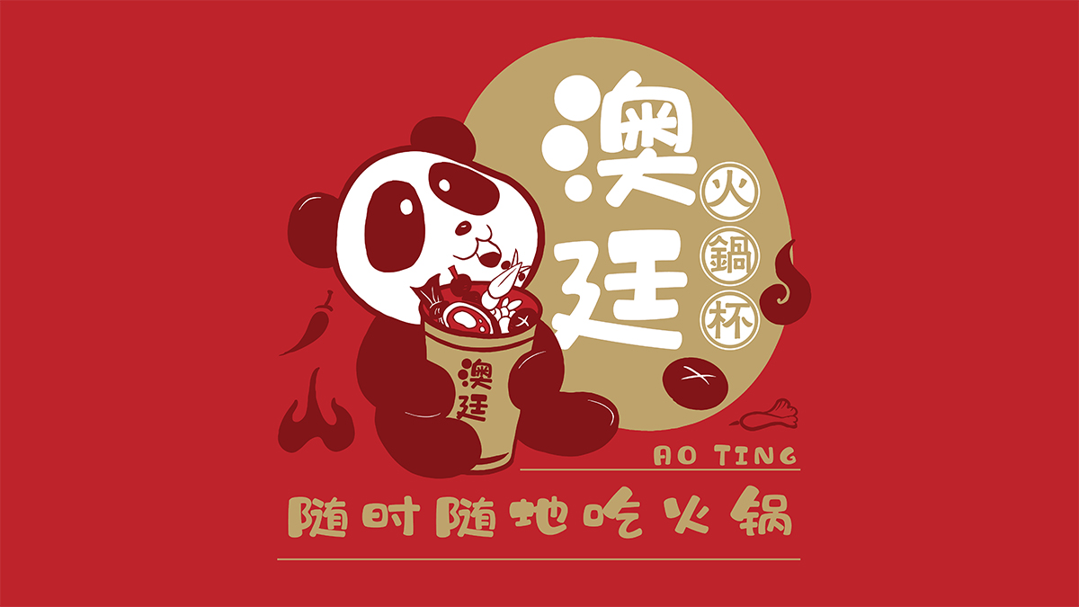 當(dāng)熊貓遇上火鍋,當(dāng)國寶遇到國粹,碰撞出源自中國的寶藏——澳廷火鍋杯。澳廷以熊貓為視覺錘與火鍋相結(jié)合,打造年輕可愛的插畫中國風(fēng)品牌形象,貼合目標(biāo)消費(fèi)群體喜好,易傳播,辨識度高;色彩運(yùn)用上,采用大篇幅的紅色系應(yīng)用,洋溢滿滿熱情與活潑,符合火鍋調(diào)性。